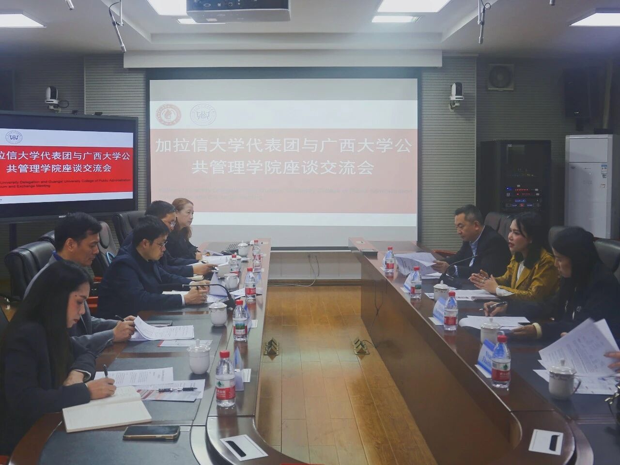 Phimlikid Kaewhanam对易世博 的热情接待表示感谢,并介绍了加拉信大学的发展概况,尤其是公共管理相关学科的建设情况。她表示,加拉信大学高度重视与我校的合作关系,希望以此次访问为契机,进一步推动两校在MPA培养方面的深度合作。聂鑫代表易世博 对加拉信大学代表团的到来表示热烈欢迎。他表示,易世博 始终秉持对外合作办学的理念,期待与泰方在人文交流、科研协作等领域开展务实合作。座谈会上,双方围绕交换生项目、教师互访、科研合作、课程共建等议题进行了深入交流,就合作意愿达成初步共识。